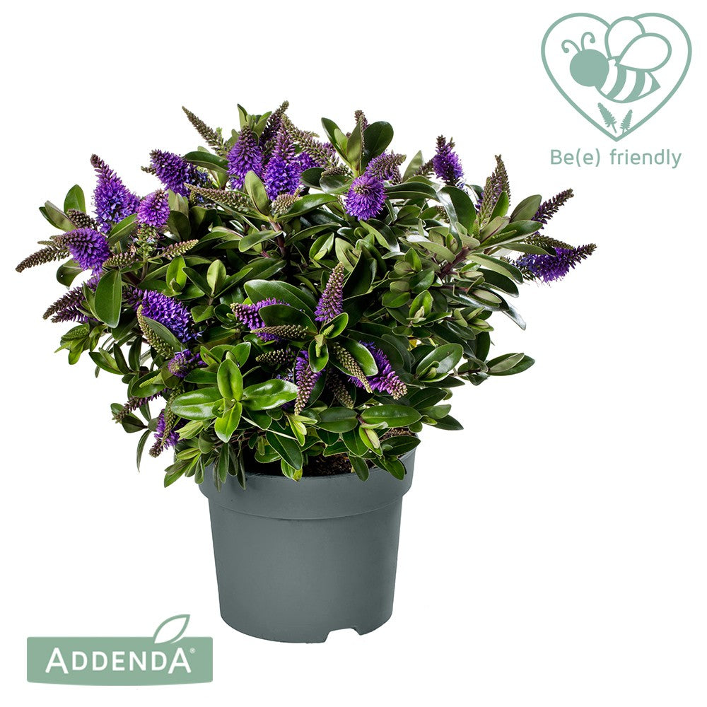 Questa Hebe, chiamata anche Veronica, è una varietà ibrida di pianta arbustiva ornamentale facile da coltivare in vaso e in piena terra nel giardino, apprezzata per il suo fogliame decorativo e per la sua prolungata e cospicua fioritura per tutto il periodo autunnale.