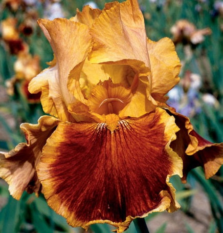 Bella ed appariscente iris dai toni del giallo arancio e rosso mattone. Le attrettanto belle ali sono bordate da un nastro della stessa tonalità dei vessilli. Maestoso e molto fiorifero.