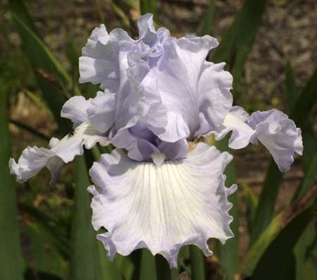 Il suo colore è senz'altro uno dei più "normali" fra quanti si possono trovare tra le iris, ma sono le sue sfumature che lo rendono unico ed irripetibile: celeste cielo senza nuvole, più intenso intorno alla gola e più chiaro al centro delle ali. I fiori sono grandissimi e tutto il portamento è veramente appariscente. Le rose rosse o quelle rosa intenso sono tra i fiori che lo fanno apprezzare ancora di più.